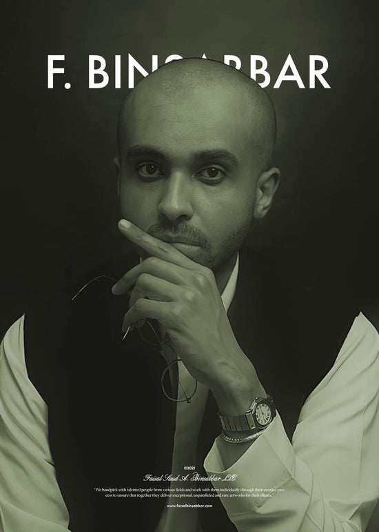 Faisal Binsabbar was born in April 1993 in Riyadh, Saudi Arabia. From an early age, he demonstrated a distinctive artistic sensibility, shaped by the cultural richness of his environment and a profound curiosity for global artistic masterpieces. This exposure played a pivotal role in broadening his vision and deepening his appreciation for the arts.
