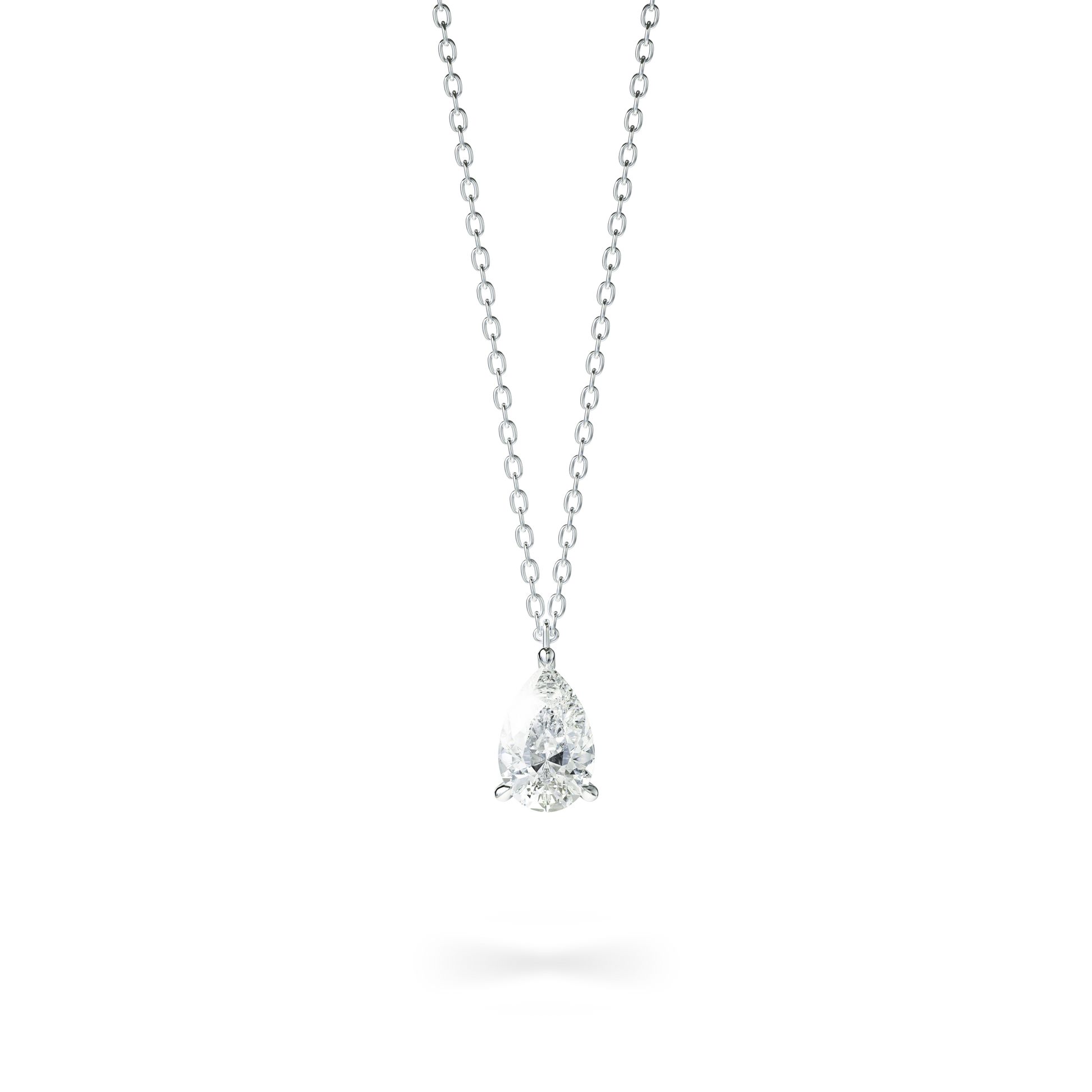 Diamond Pendant, pear shape diamond in 18k white gold.