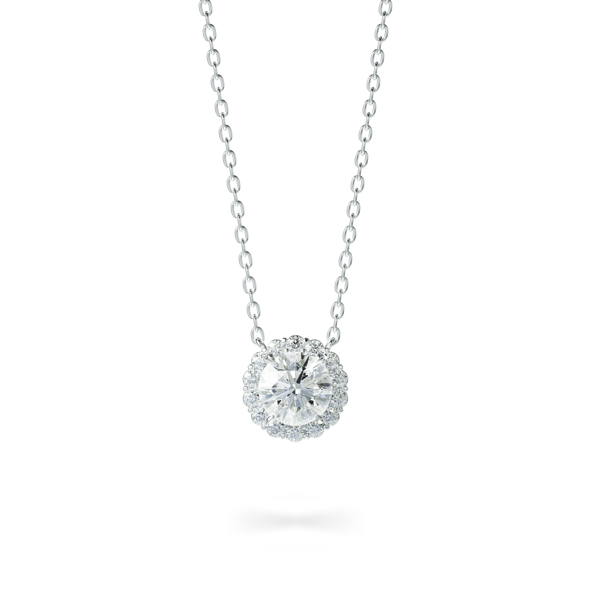 Diamond Pendant, round brilliant diamond and pavé in 18k white gold.
