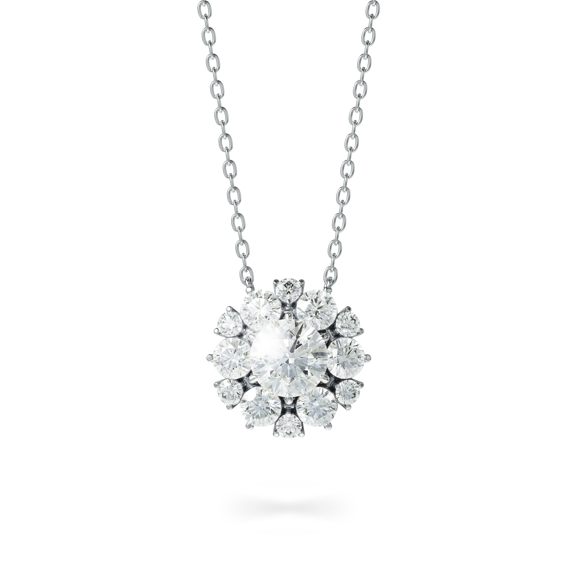 Diamond Pendant, round brilliant cluster diamond in 18k white gold.