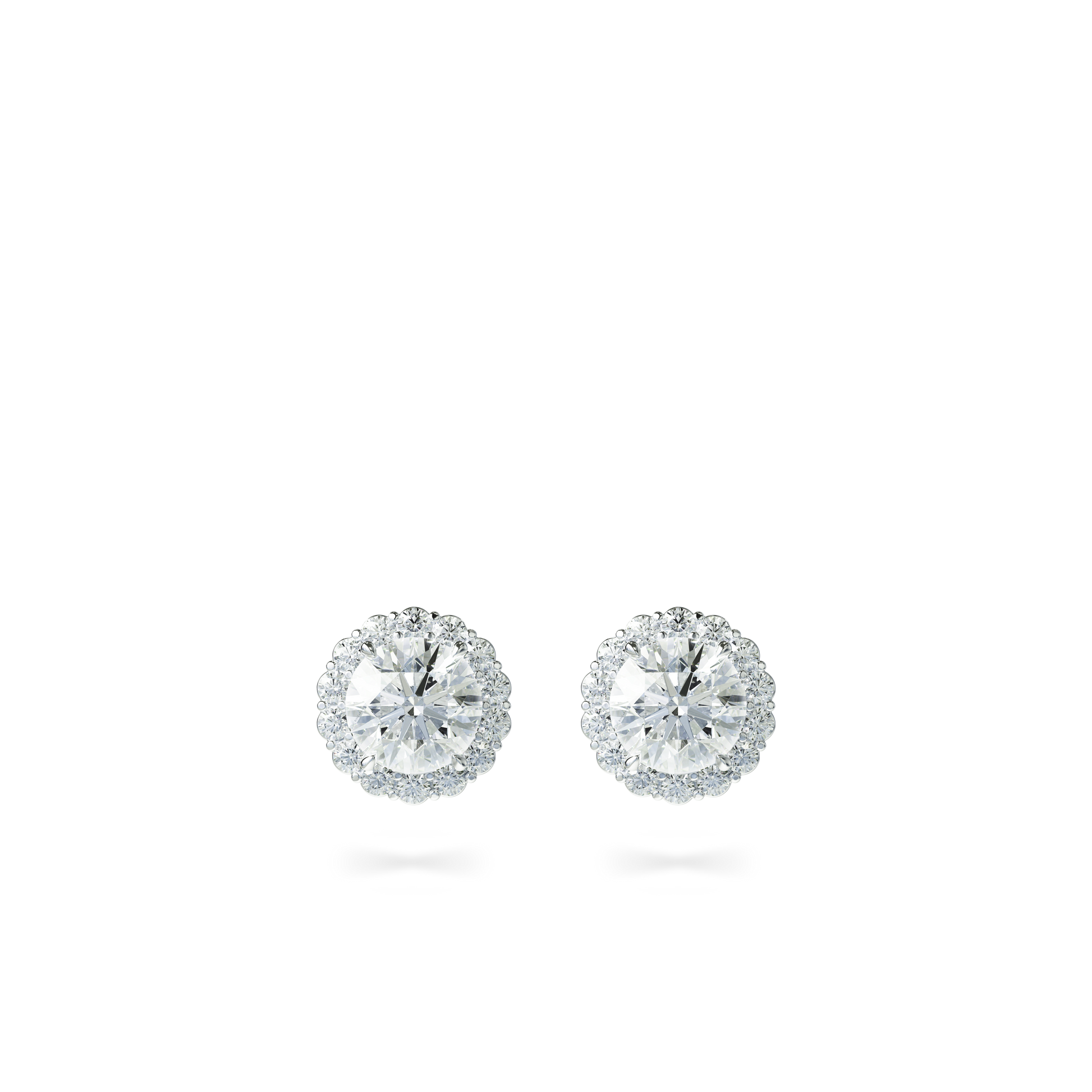 Diamond Earrings, round brilliant diamond and pavé in 18k white gold.