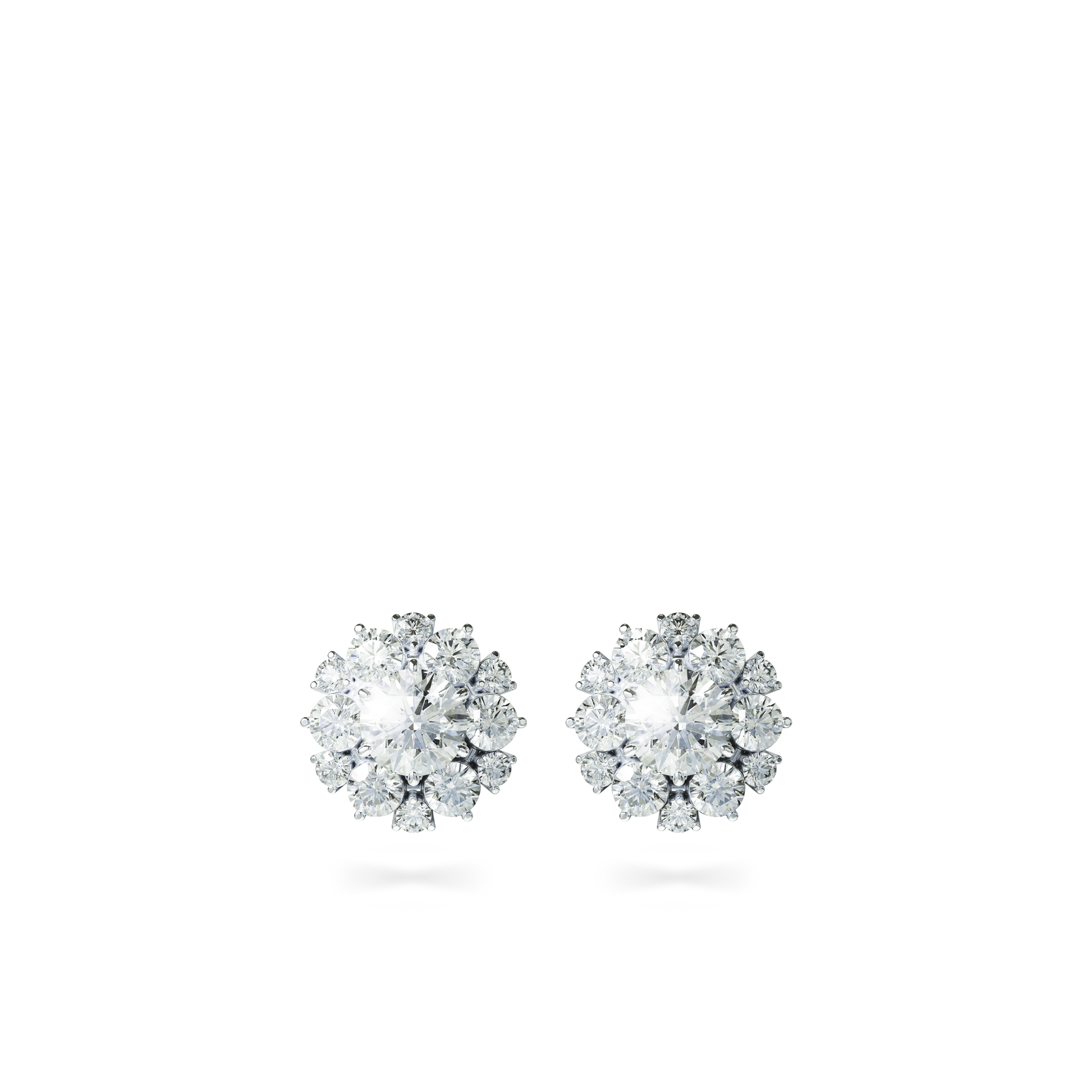 Diamond Earrings, round brilliant cluster diamond in 18k white gold.